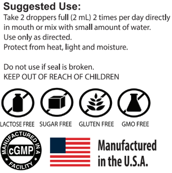 How to Use: Take 2 dropperfuls (1mL) 2 times per day directly in mouth or mix with a small amount of water.